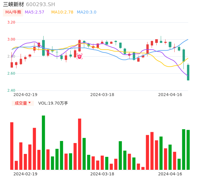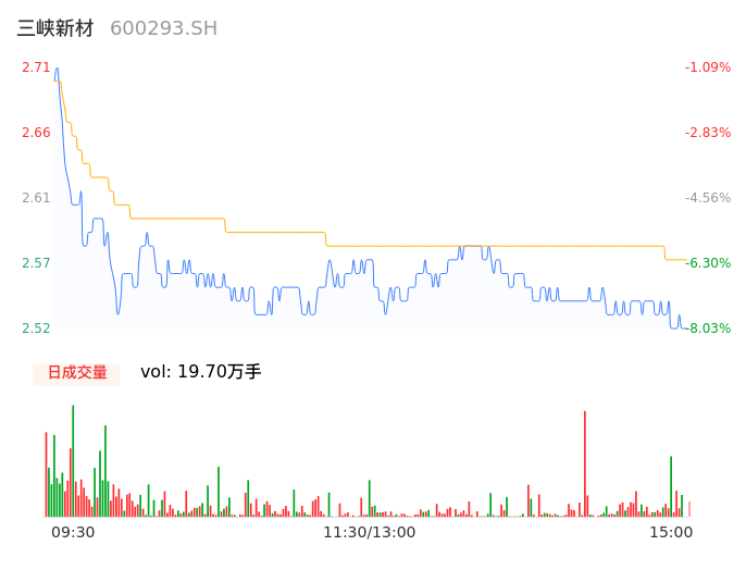04月16日,三峡新材收报2.52,股价涨幅-8.03%,成交金额5066.02万元,换手率1.70%。