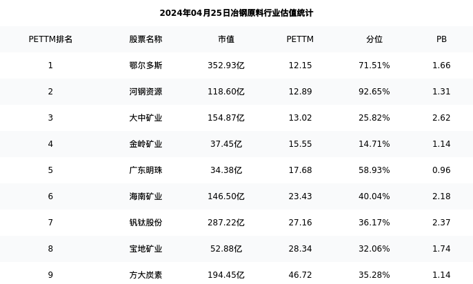 从估值角度看:鄂尔多斯最新市盈率PETTM为12.15,在行业内排名1/9,处于71.51分位。