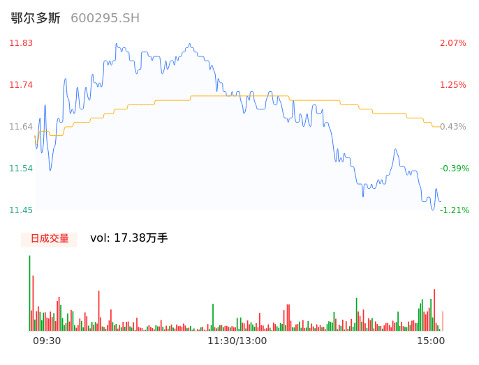 04月08日,鄂尔多斯收报11.49,股价涨幅-0.86%,成交金额2.02亿元,换手率0.88%。