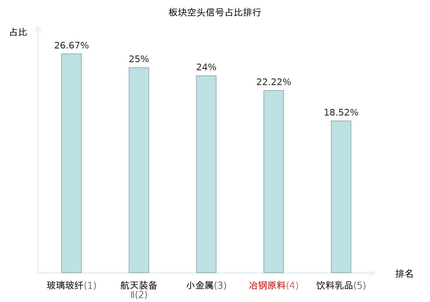 全市场所有行业板块中主力空头信号占比排名中,玻璃玻纤板块位居第一。普钢板块名次提升最快,较昨日上升113位。