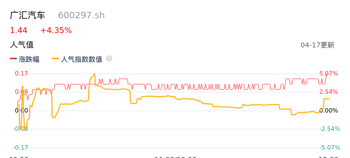 04月17日,广汇汽车收报1.44,股价涨幅4.35%,成交金额7859.93万元,换手率0.68%。