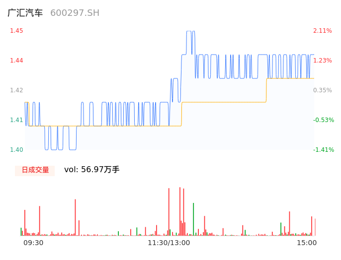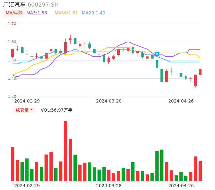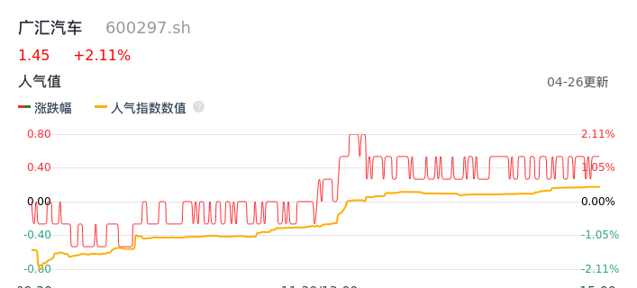 04月26日,广汇汽车收报1.45,股价涨幅2.11%,成交金额8129.99万元,换手率0.70%。