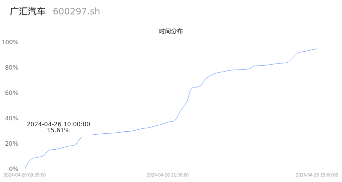 600297广汇汽车2024年04月26日成交56.97万手,成交金额8129.99万元,相较昨日缩量8.57万手,换手率0.70%,成交清淡。