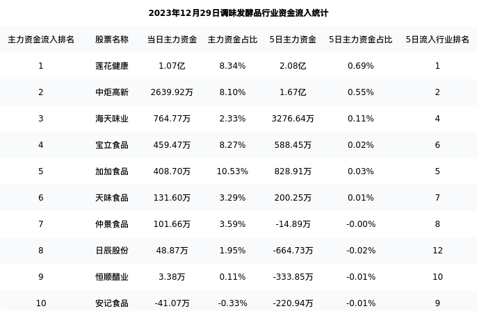 从主力资金流向来看,调味发酵品行业今日主力资金流入8.67亿元,在所有申万二级行业中排名:43/131。