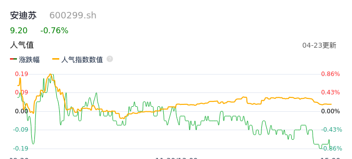 04月23日,安迪苏收报9.20,股价涨幅-0.76%,成交金额6760.53万元,换手率0.27%。