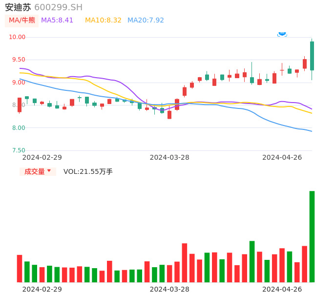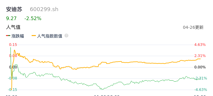 04月26日,安迪苏收报9.27,股价涨幅-2.52%,成交金额2.01亿元,换手率0.80%。