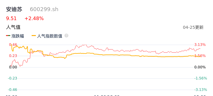 04月25日,安迪苏收报9.51,股价涨幅2.48%,成交金额8133.83万元,换手率0.32%。
