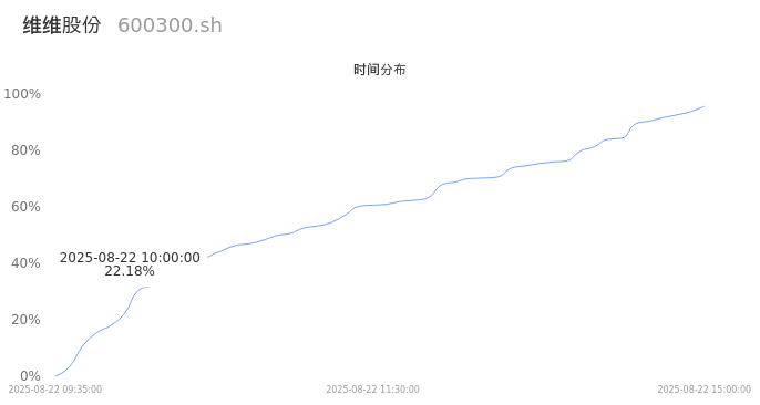 600300维维股份2025年08月22日成交30.23万手,成交金额1.04亿,相较昨日缩量6.87万手,换手率1.87%,成交清淡。