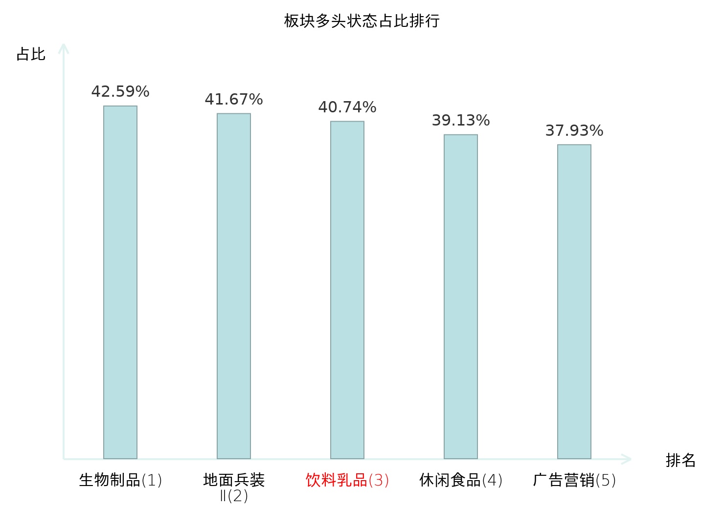 全市场所有行业板块中主力多头状态占比排名中,生物制品板块位居第一。黑色家电板块名次提升最快,较昨日上升65位。