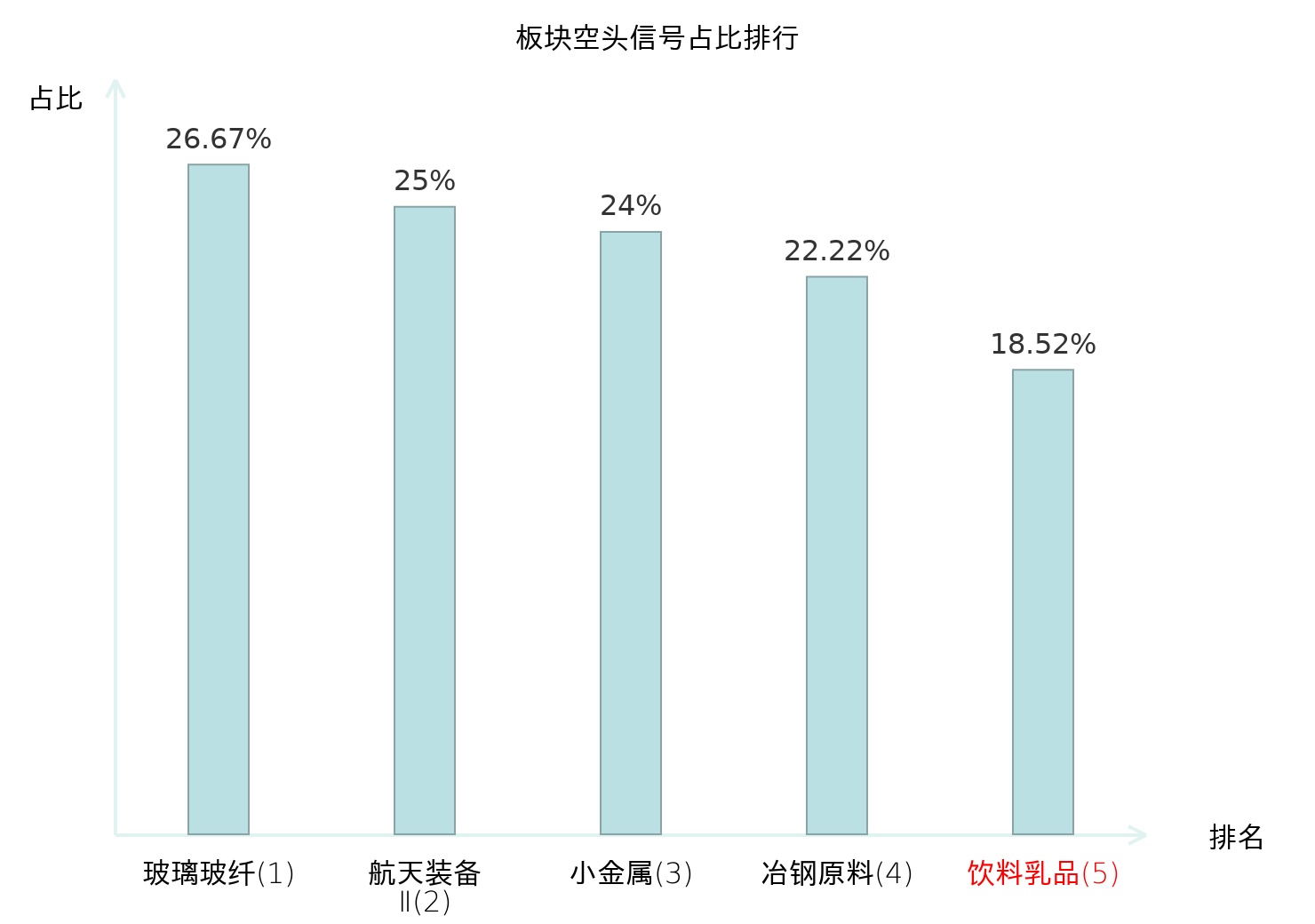 全市场所有行业板块中主力空头信号占比排名中,玻璃玻纤板块位居第一。普钢板块名次提升最快,较昨日上升113位。