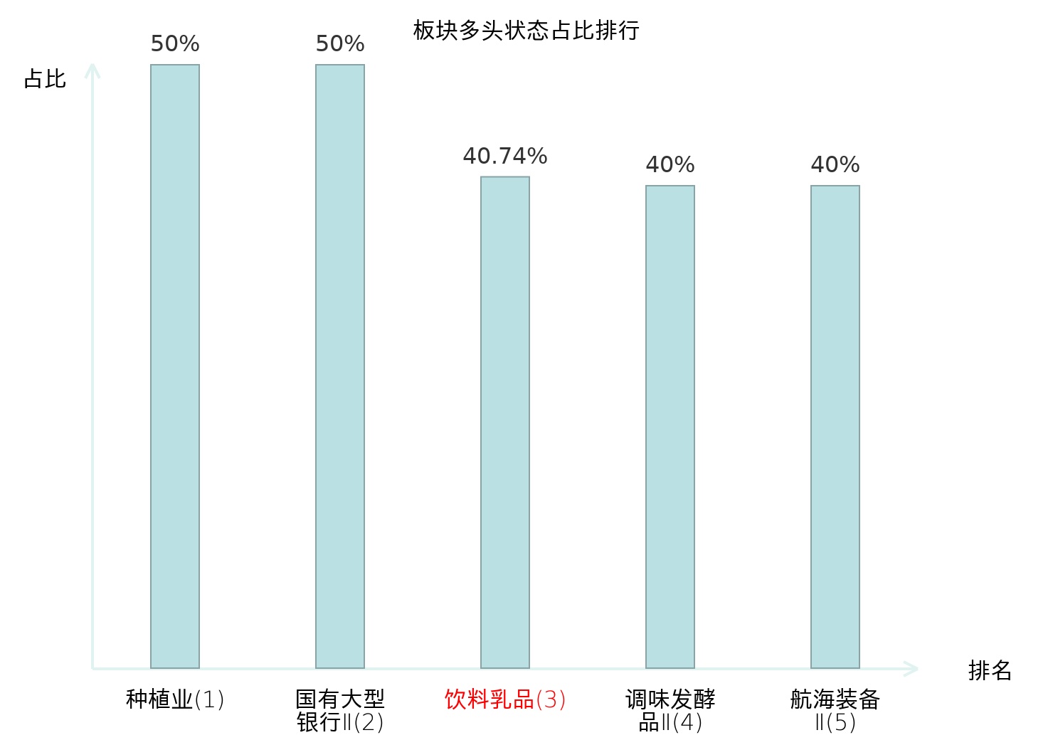 全市场所有行业板块中主力多头状态占比排名中,种植业板块位居第一。冶钢原料板块名次提升最快,较昨日上升89位。