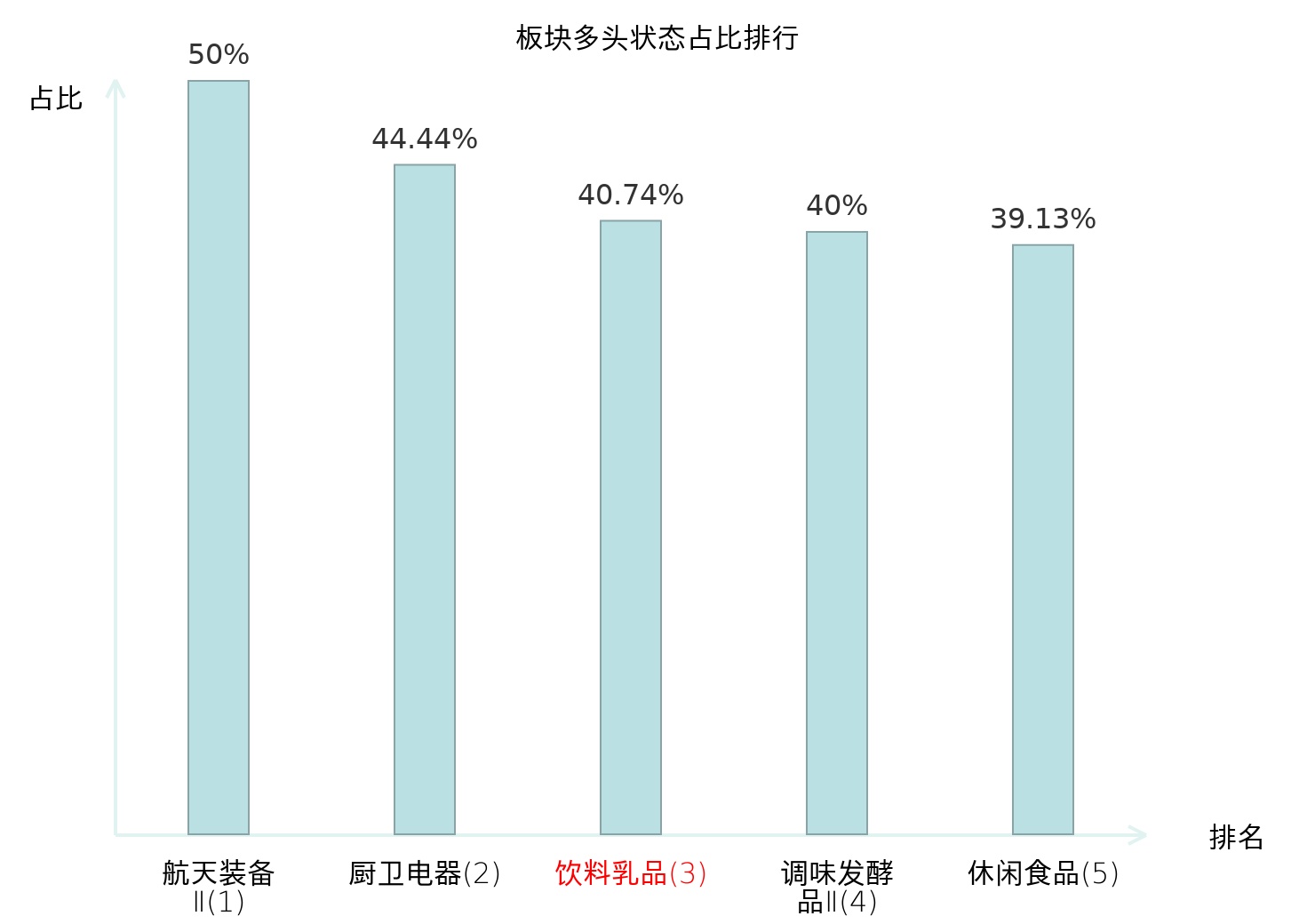 全市场所有行业板块中主力多头状态占比排名中,航天装备Ⅱ板块位居第一。林业Ⅱ板块名次提升最快,较昨日上升92位。