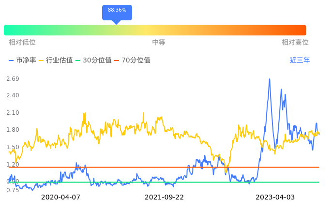 ST曙光当前市净率PB为1.72,在所属的商用车中,市净率PB排7,前五名分别为江铃汽车市净率1.30、金龙汽车市净率1.32、动力新科市净率1.34、中国重汽市净率1.43、东风汽车市净率1.43。ST曙光当前市净率PB为1.72,超过近3年88.36%的历史数据。