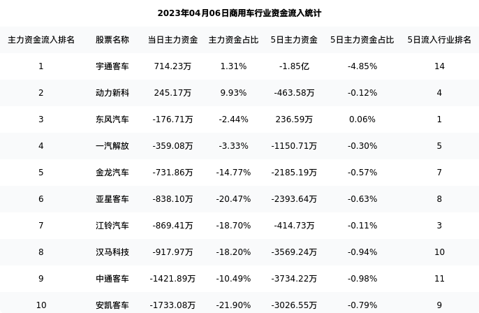 从主力资金流向来看,商用车行业今日主力资金流入7.38亿元,在所有申万二级行业中排名:74/131。