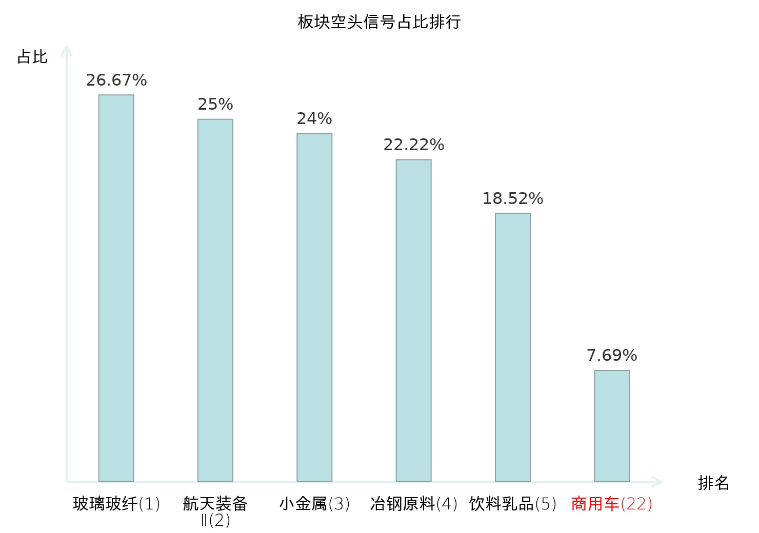 全市场所有行业板块中主力空头信号占比排名中,玻璃玻纤板块位居第一。普钢板块名次提升最快,较昨日上升113位。