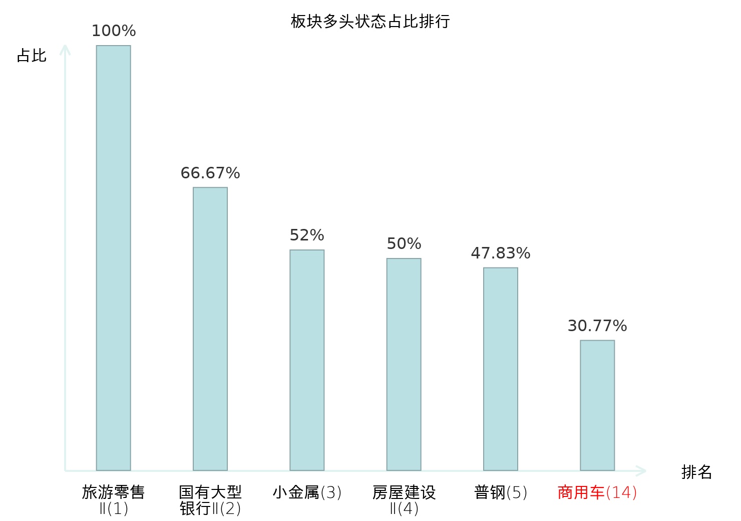 全市场所有行业板块中主力多头状态占比排名中,旅游零售Ⅱ板块位居第一。其他电源设备Ⅱ板块名次提升最快,较昨日上升55位。