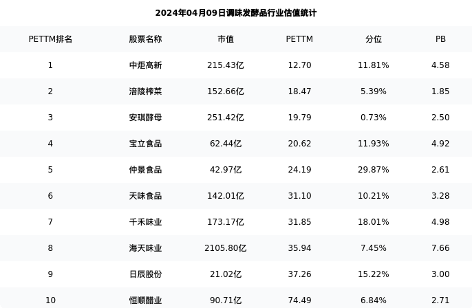 从估值角度看:恒顺醋业最新市盈率PETTM为74.49,在行业内排名10/14,处于6.84分位。