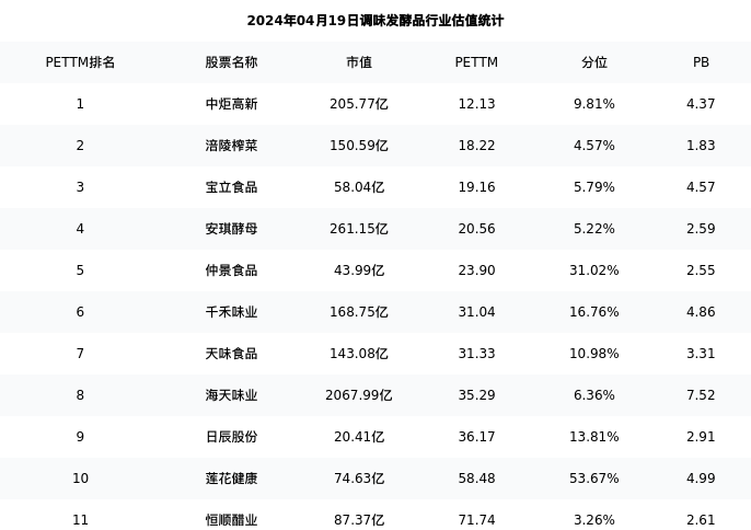 从估值角度看:恒顺醋业最新市盈率PETTM为71.74,在行业内排名11/14,处于3.26分位。