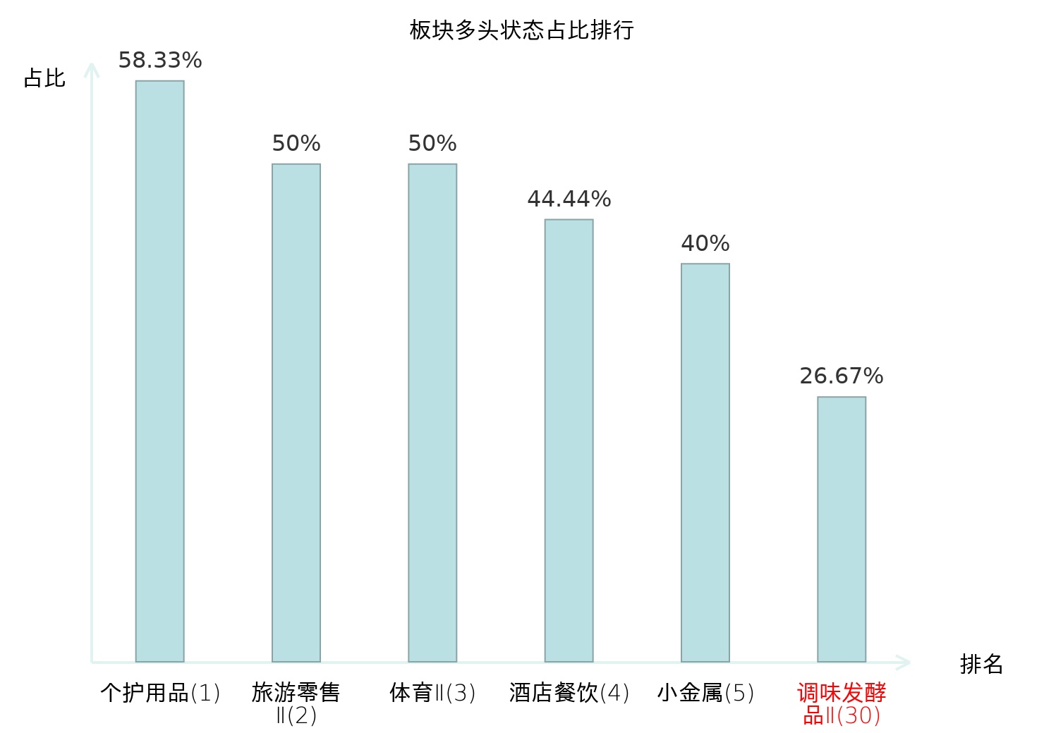 全市场所有行业板块中主力多头状态占比排名中,个护用品板块位居第一。乘用车板块名次提升最快,较昨日上升87位。