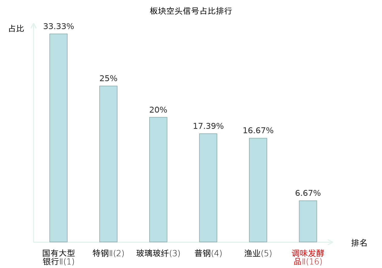 全市场所有行业板块中主力空头信号占比排名中,国有大型银行Ⅱ板块位居第一。普钢板块名次提升最快,较昨日上升115位。