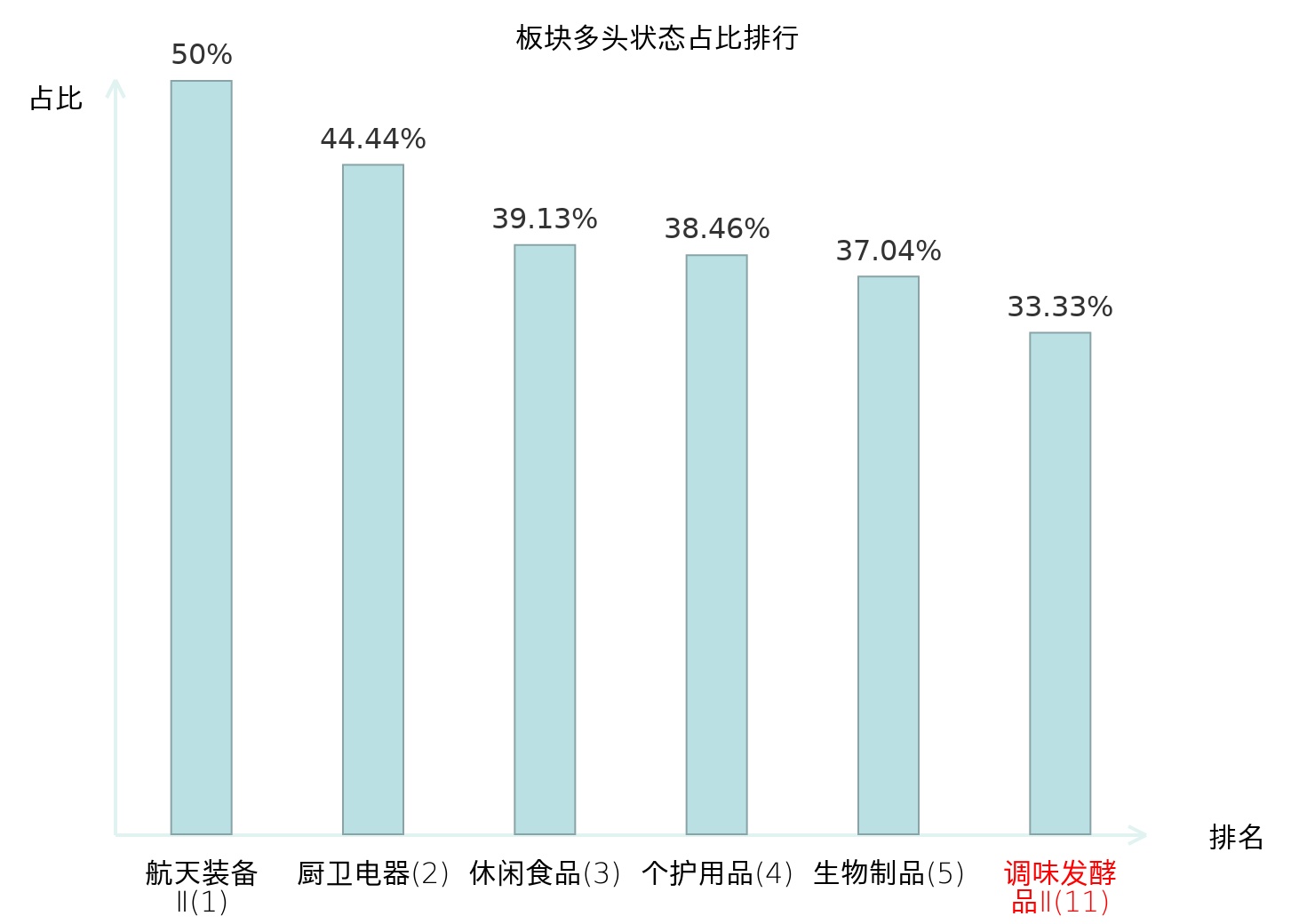 全市场所有行业板块中主力多头状态占比排名中,航天装备Ⅱ板块位居第一。小金属板块名次提升最快,较昨日上升53位。