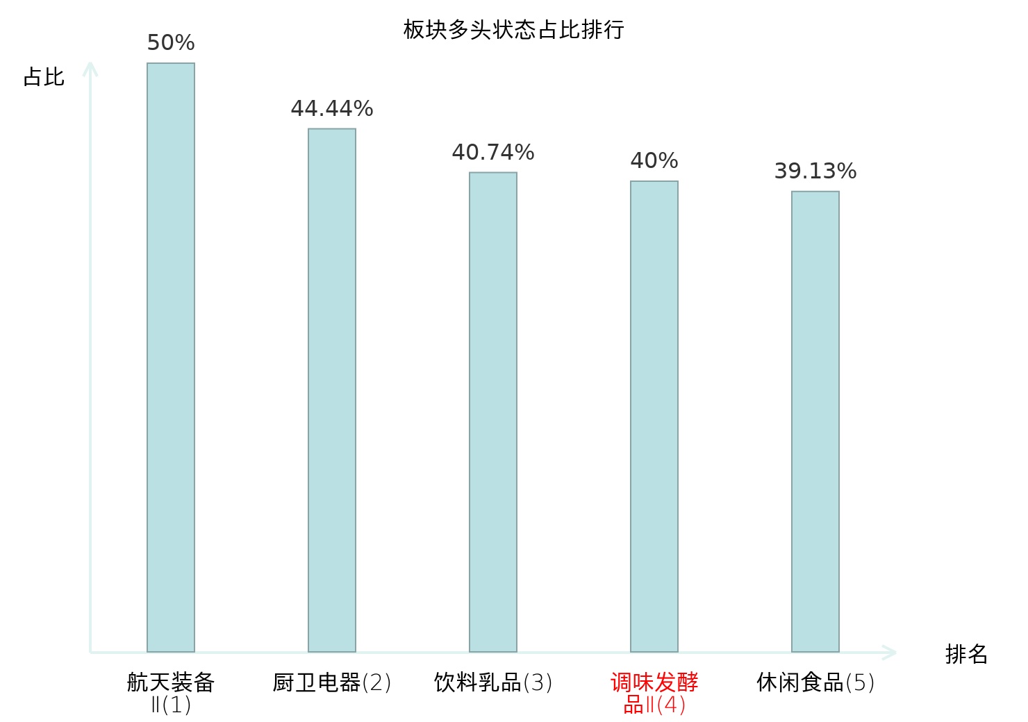 全市场所有行业板块中主力多头状态占比排名中,航天装备Ⅱ板块位居第一。林业Ⅱ板块名次提升最快,较昨日上升92位。
