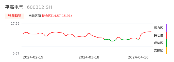 我们来看一下该股的九方特色指标强弱趋势的情况:平高电气自04月11日从观望区上穿到持仓区。股价近期在多头区域持续强势上扬,上升动能仍较为充足,可积极关注。后续重点关注上方压力位:15.91元是否能突破上攻。