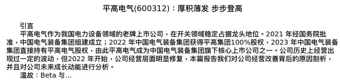 值得注意的是:2024年04月长江证券的邬博华/曹海花/司鸿历/袁澎分析师,首次发布关于平高电气的研究报告,标题为:平高电气(600312):厚积薄发 步步登高。