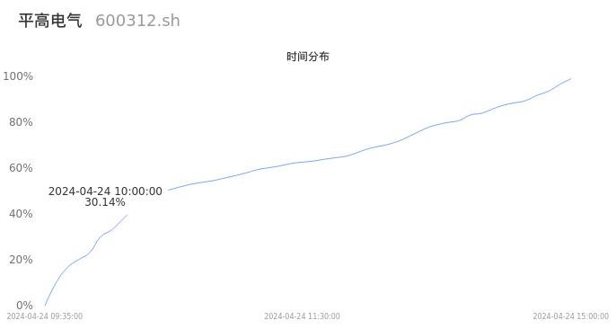600312平高电气2024年04月24日成交22.35万手,成交金额3.40亿元,相较昨日缩量30.85万手,换手率1.65%,成交清淡。