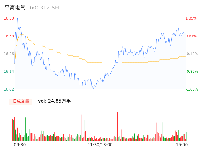 04月19日,平高电气收报16.38,股价涨幅0.61%,成交金额4.04亿元,换手率1.83%。