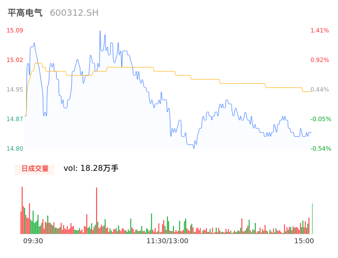 04月30日,平高电气收报14.81,股价涨幅-0.47%,成交金额2.73亿元,换手率1.35%。