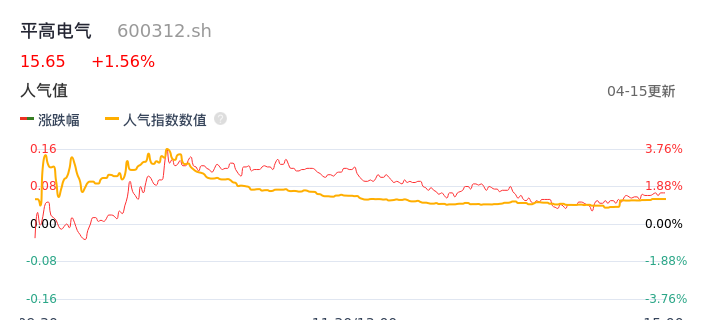04月15日,平高电气收报15.65,股价涨幅1.56%,成交金额4.79亿元,换手率2.25%。