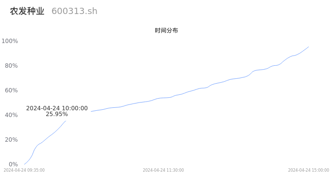 根据成交分布分析,该股票当天放量成交,成交清淡。时间上看,早盘前半小时成交量占据当天总成交量的25.95%;价格上看,成交呈现中间峰。成交分布分析主要研究股票成交的分布特性,不具有预测功能,请知悉。