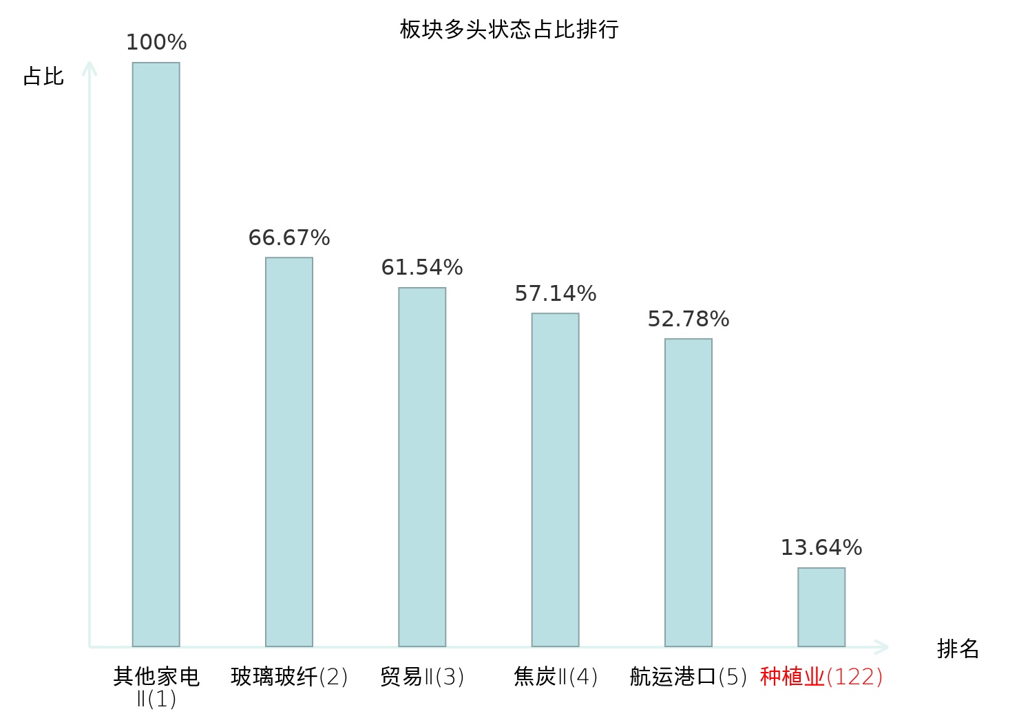 全市场所有行业板块中主力多头状态占比排名中,其他家电Ⅱ板块位居第一。影视院线板块名次提升最快,较昨日上升62位。