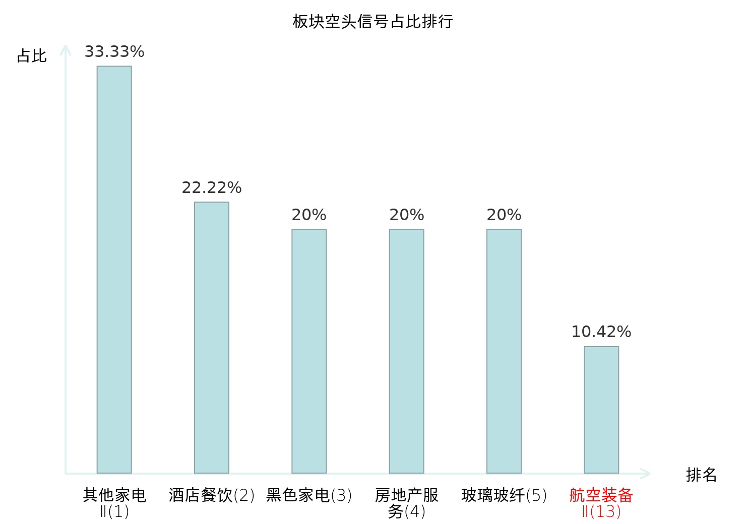 全市场所有行业板块中主力空头信号占比排名中,其他家电Ⅱ板块位居第一。家居用品板块名次提升最快,较昨日上升111位。