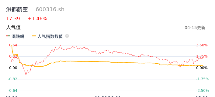 04月15日,洪都航空收报17.39,股价涨幅1.46%,成交金额1.38亿元,换手率1.11%。
