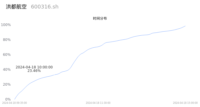 根据成交分布分析,该股票当天放量成交,成交清淡。时间上看,早盘前半小时成交量占据当天总成交量的23.46%;价格上看,成交呈现右偏峰。成交分布分析主要研究股票成交的分布特性,不具有预测功能,请知悉。