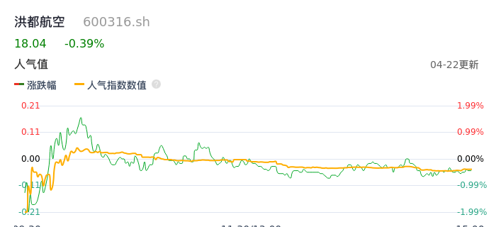 04月22日,洪都航空收报18.04,股价涨幅-0.39%,成交金额2.09亿元,换手率1.61%。