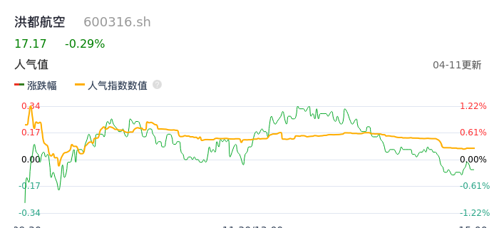 04月11日,洪都航空收报17.17,股价涨幅-0.29%,成交金额6601.16万元,换手率0.53%。