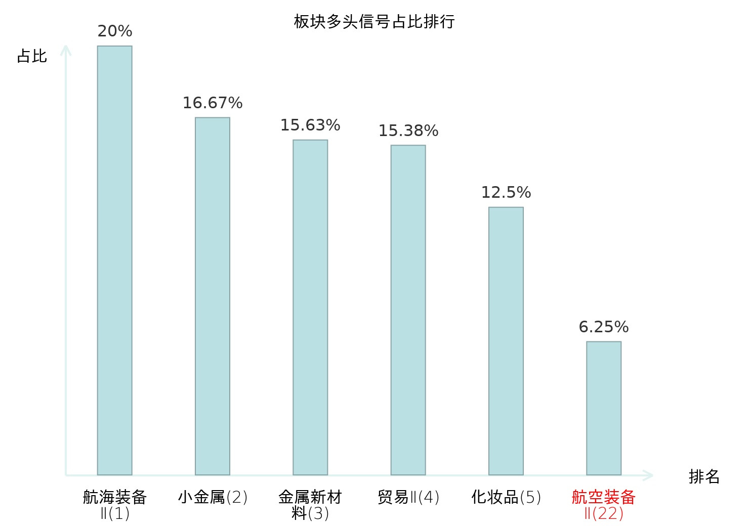全市场所有行业板块中主力多头信号占比排名中,航海装备Ⅱ板块位居第一。航海装备Ⅱ板块名次提升最快,较昨日上升115位。
