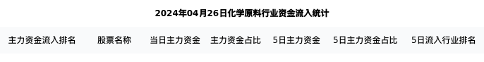 从主力资金流向来看,化学原料行业今日主力资金流入25.59亿元,在所有申万二级行业中排名:1/131。
