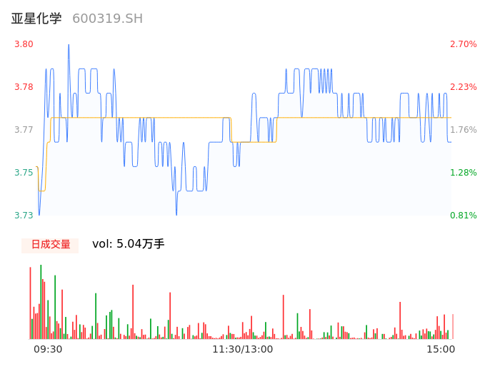04月23日,亚星化学收报3.77,股价涨幅1.89%,成交金额1897.00万元,换手率1.60%。