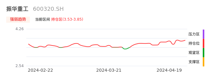 我们来看一下该股的九方特色指标强弱趋势的情况:振华重工自03月29日从观望区上穿到持仓区。股价近期在多头区域持续强势上扬,上升动能仍较为充足,可积极关注。后续重点关注上方压力位:3.85元是否能突破上攻。