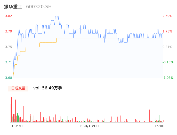 04月19日,振华重工收报3.78,股价涨幅1.61%,成交金额2.13亿元,换手率1.70%。