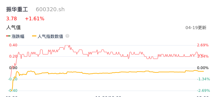 04月19日,振华重工收报3.78,股价涨幅1.61%,成交金额2.13亿元,换手率1.70%。