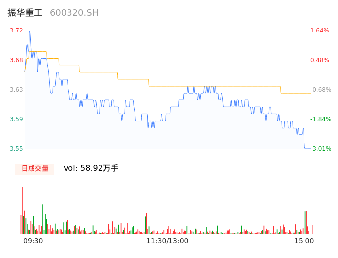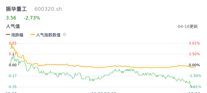 04月16日,振华重工收报3.56,股价涨幅-2.73%,成交金额2.14亿元,换手率1.77%。