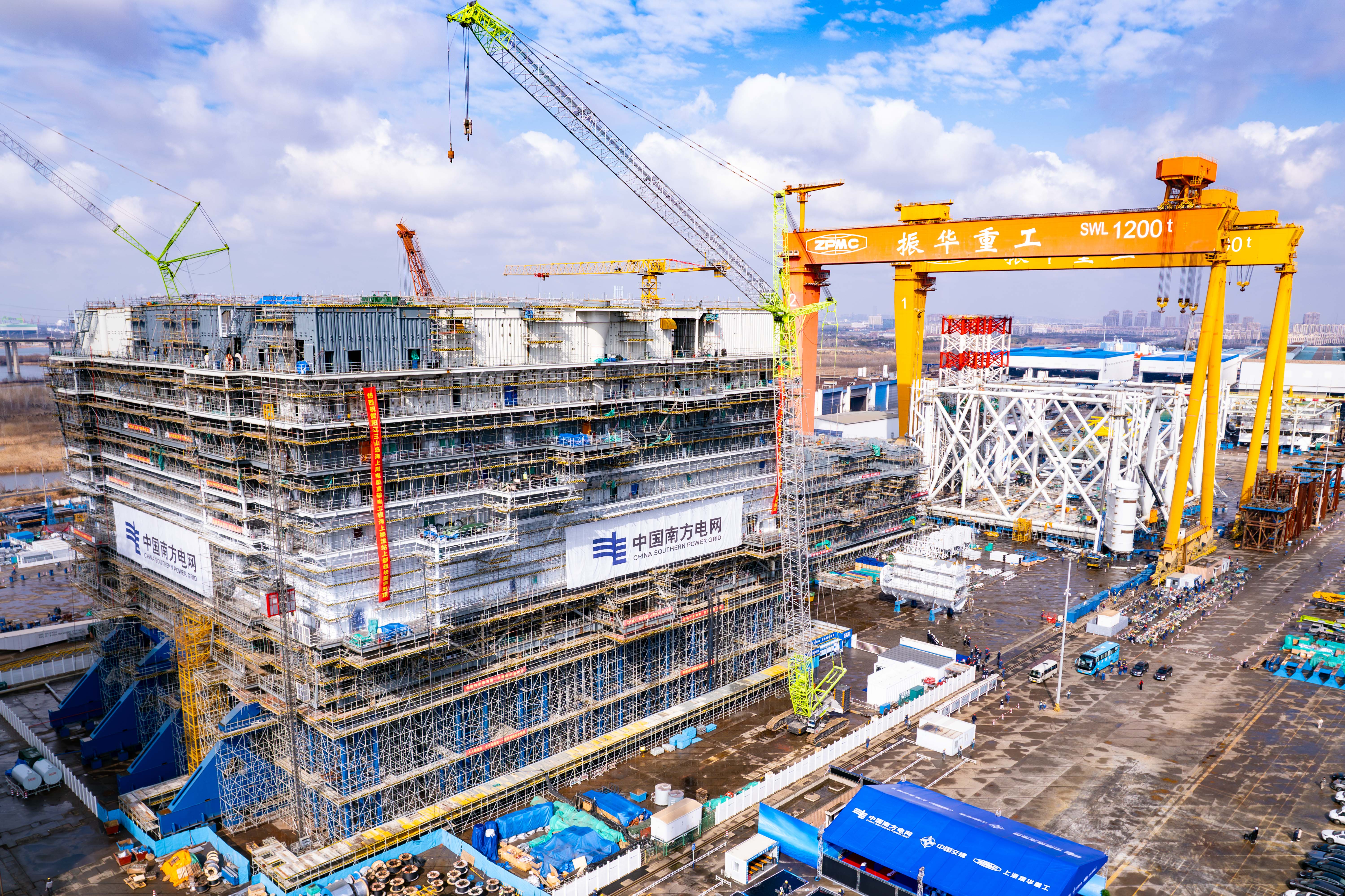振华重工方面表示,近年来公司积极践行海洋强国战略,深耕海上风电换流站制造领域,具备海上换流站设计、制造、海上运输及施工安装全链条服务能力,先后承建了世界最大、亚洲首座换流站,国内单体容量最大的海上换流站等项目,为海上风电进入规模化、大型化、深远海化发展,助力国家实现“双碳”目标贡献力量。