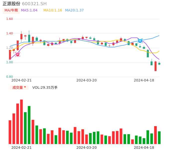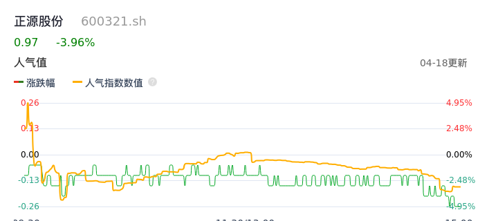 04月18日,正源股份收报0.97,股价涨幅-3.96%,成交金额2888.43万元,换手率1.94%。