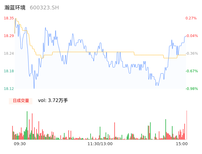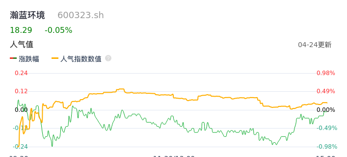 04月24日,瀚蓝环境收报18.29,股价涨幅-0.05%,成交金额6775.33万元,换手率0.46%。
