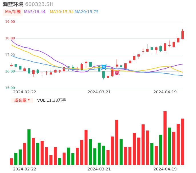 04月19日,瀚蓝环境收报18.44,股价涨幅2.33%,成交金额2.09亿元,换手率1.40%。
